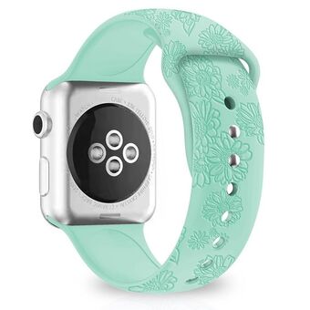 Sunflower Embossing Silicone Watch Band For Apple Watch Ultra 49mm&Watch Ultra 2 49mm / Series 9&8&7 45mm / SE 3&SE 2&6&SE&5&4 44mm / 3&2&1 42mm(Mint Green)