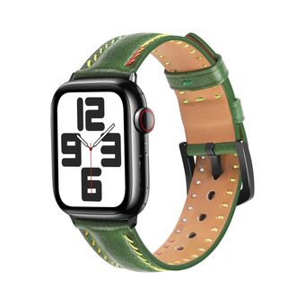 For Apple Watch Series 3 42mm Colorful Sewing Thread Leather Watch Band(Green)