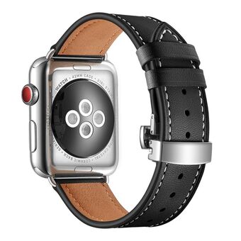 For Apple Watch Series 3 42mm Colorful Sewing Thread Leather Watch Band(Black)