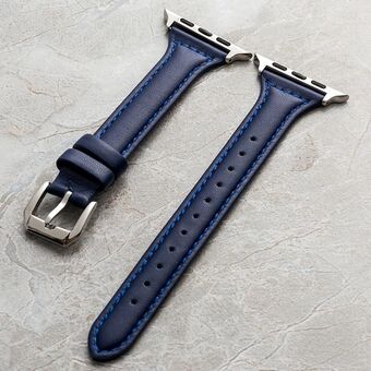 Genuine Leather Watch Band For Apple Watch Series 9&8&7 41mm / SE 3&SE 2&6&SE&5&4 40mm / 3&2&1 38mm(Blue)