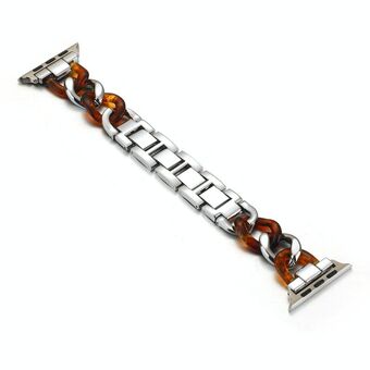 Cowboy Chain + Resin Metal Watch Band For Apple Watch Series 9&8&7 41mm / SE 3&SE 2&6&SE&5&4 40mm / 3&2&1 38mm(Silver+Tortoiseshell)