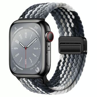 For Apple Watch Series 9 45mm Nylon Woven Magnetic Fold Buckle Watch Band(Grey Black)