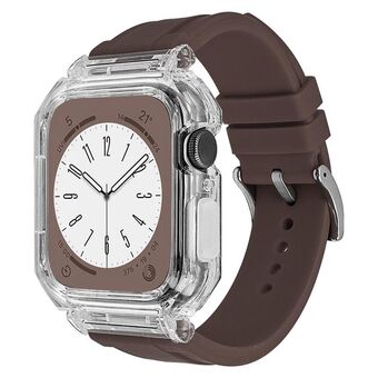 Crystal Clear Polycarbonate Case Silicone Watch Band For Apple Watch Series 9&8&7 41mm / SE 3&SE 2&6&SE&5&4 40mm / 3&2&1 38mm(Brown)
