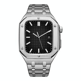 Ενσωματωμένο μεταλλικό λουρί από ξύλο δρυός + θήκη ρολογιού για Apple Watch Series 6&SE&5&4 44mm (Ασημί)