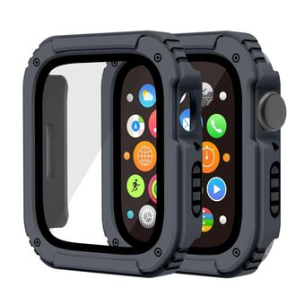 2 in 1 Screen Tempered Glass Film Protective Case For Apple Watch Series 9 / 8 / 7 45mm(Dark Grey)