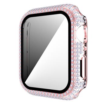 Θήκη ρολογιού PC με διαμάντια διπλής σειράς και μεμβράνη για Apple Watch Series 6 / 5 / 4 / SE 44mm (Χρυσό ροζ)