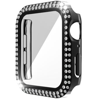 Θήκη ρολογιού PC με διαμάντια διπλής σειράς και μεμβράνη (διαφανές) για Apple Watch Series 6 / 5 / 4 / SE 44mm.