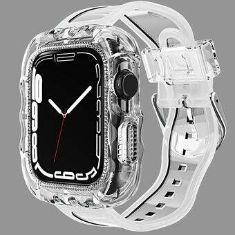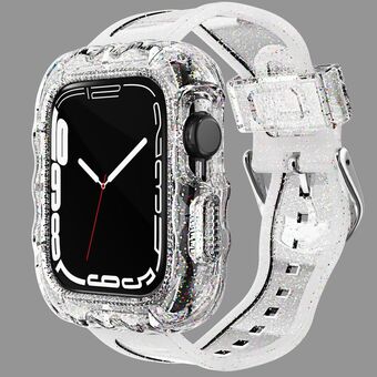 TPU Integrated Case Watch Band For Apple Watch Series 8&7 45mm / SE 2&6&SE&5&4 44mm / 3&2&1 42mm(Transparent Glitter)