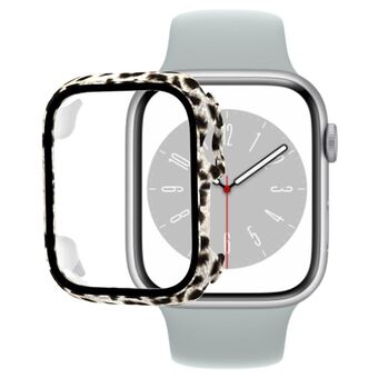 Tempered Glass Film PC Watch Case For Apple Watch Series 9 / 8 / 7 41mm(Leopard Print)