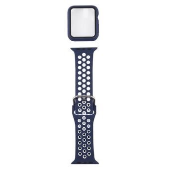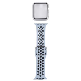 Silicone Watch Band + Protective Case with Screen Protector Set For Apple Watch Series 3 & 2 & 1 42mm(Blue White)