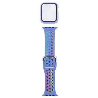 Silicone Watch Band + Protective Case with Screen Protector Set For Apple Watch Series 3 & 2 & 1 42mm(Blue Colorful)