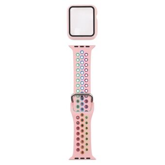Silicone Watch Band + Protective Case with Screen Protector Set For Apple Watch Series 3 & 2 & 1 42mm(Pink Colorful)