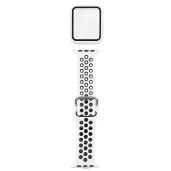 Silicone Watch Band + Protective Case with Screen Protector Set For Apple Watch Series 3 & 2 & 1 42mm(White Black)