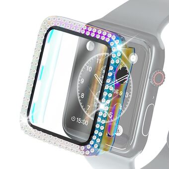 Electroplating PC Double Rows Diamond Protective Case with Tempered Glass Film For Apple Watch Series 6 & SE & 5 & 4 40mm (Colorful)