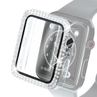 Electroplating PC Double Rows Diamond Protective Case with Tempered Glass Film For Apple Watch Series 6 & SE & 5 & 4 40mm (Transparent)