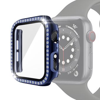 Electroplating PC Single Row Diamond Protective Case with Tempered Glass Film For Apple Watch Series 6 & SE & 5 & 4 40mm(Blue)