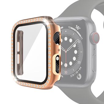 Electroplating PC Single Row Diamond Protective Case with Tempered Glass Film For Apple Watch Series 6 & SE & 5 & 4 40mm(Rose Gold)