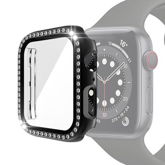 Electroplating PC Single Row Diamond Protective Case with Tempered Glass Film For Apple Watch Series 6 & SE & 5 & 4 40mm(Black)