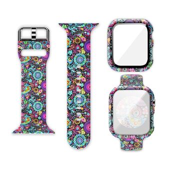 Silicone Printing Integrated Watch Case Watch Band For Apple Watch Series 3 & 2 & 1 42mm(Sun Flower)