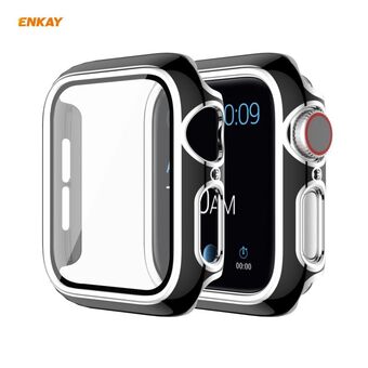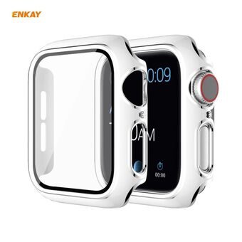 Θήκη ENKAY Hat-Prince με πλήρη κάλυψη, επιμεταλλωμένο PC και προστασία από σκληρυμένο γυαλί για Apple Watch Series 6 / 5 / 4 / SE 40mm (Λευκό+Ασημί) (ENKAY)