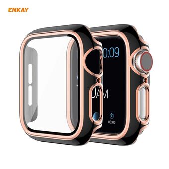 Θήκη ENKAY Hat-Prince με πλήρη κάλυψη, επιμεταλλωμένο PC και προστασία από σκληρυμένο γυαλί για Apple Watch Series 6 / 5 / 4 / SE 44mm (Λευκό+Σαμπάνια) (ENKAY)