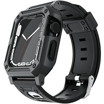 Στρατιωτικό λουράκι σιλικόνης για Apple Watch Series 8&7 45mm / SE 2&6&SE&5&4 44mm + σετ θήκης ρολογιού (Μαύρο)