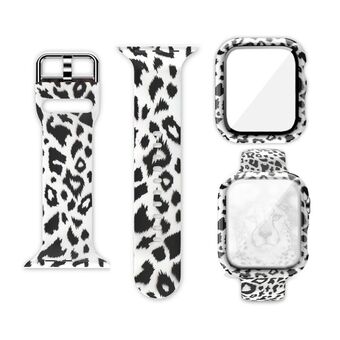 Silicone Printing Integrated Watch Case Watch Band For Apple Watch Series 7 45mm / & 6 & SE & 5 & 4 44mm(White-haired Leopard)