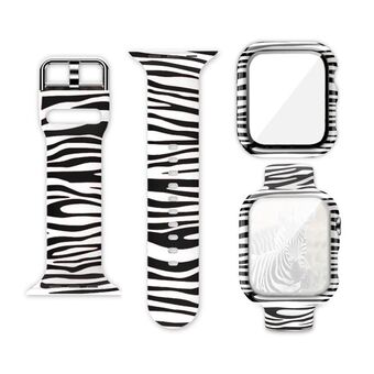 Silicone Printing Integrated Watch Case Watch Band For Apple Watch Series 7 45mm / & 6 & SE & 5 & 4 44mm(Zebra)