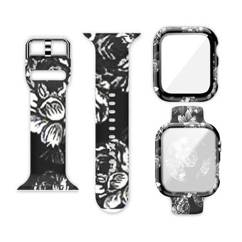 Silicone Printing Integrated Watch Case Watch Band For Apple Watch Series 3 & 2 & 1 42mm(Black Rose)