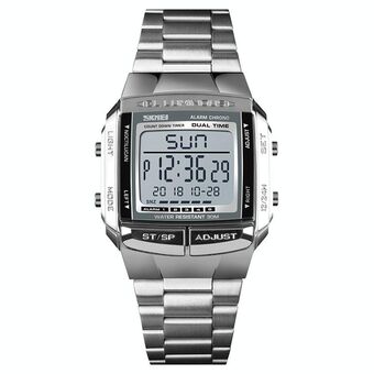 SKMEI 1381 Πολυλειτουργικό Ανδρικό Αθλητικό Ρολόι Χεριού για Εξωτερικούς Χώρους και Επιχειρηματικές Χρήσεις, Φωτεινό, Αδιάβροχο, Ψηφιακό (Ασημί) (SKMEI)