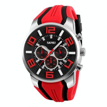 SKMEI 9128 Μοντέρνο Πολυλειτουργικό Αθλητικό Ρολόι Χειρός με Μεγάλο Καντράν 3D, Αδιάβροχο 30m, Κουάρτζ (Κόκκινο) (SKMEI)