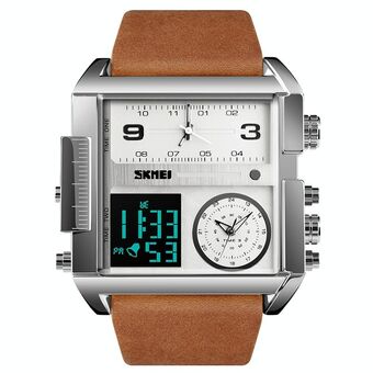 SKMEI 1391 Πολυλειτουργικό Ανδρικό Επιχειρηματικό Ψηφιακό Ρολόι 30m Αδιάβροχο Τετράγωνο Καντράν με Δερμάτινο Λουρί (Μαύρο Καφέ) (SKMEI)