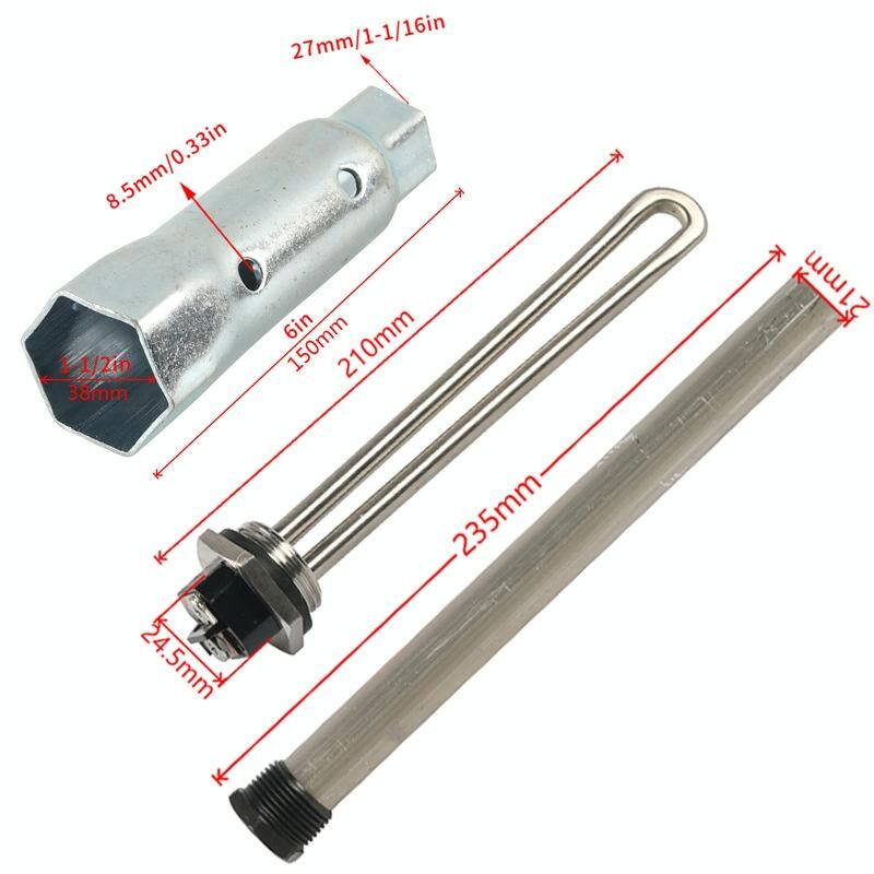 13. Size: sleeve 15x4.2x4.2cm; electric heating tube 21x3.75x3.75cm; anode rod 23.5x2.1x2.1cm