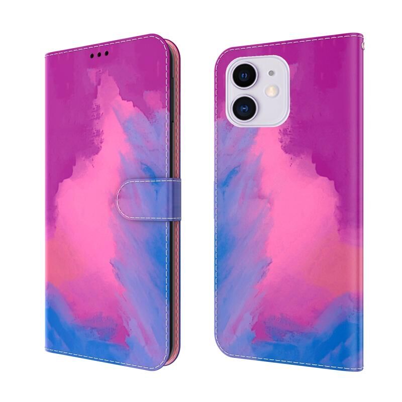 Θήκη Δερμάτινη με σχέδιο ακουαρέλας, οριζόντια αναδίπλωση, με θήκη και υποδοχή για κάρτες & πορτοφόλι για iPhone 11 (Μωβ-Κόκκινο)