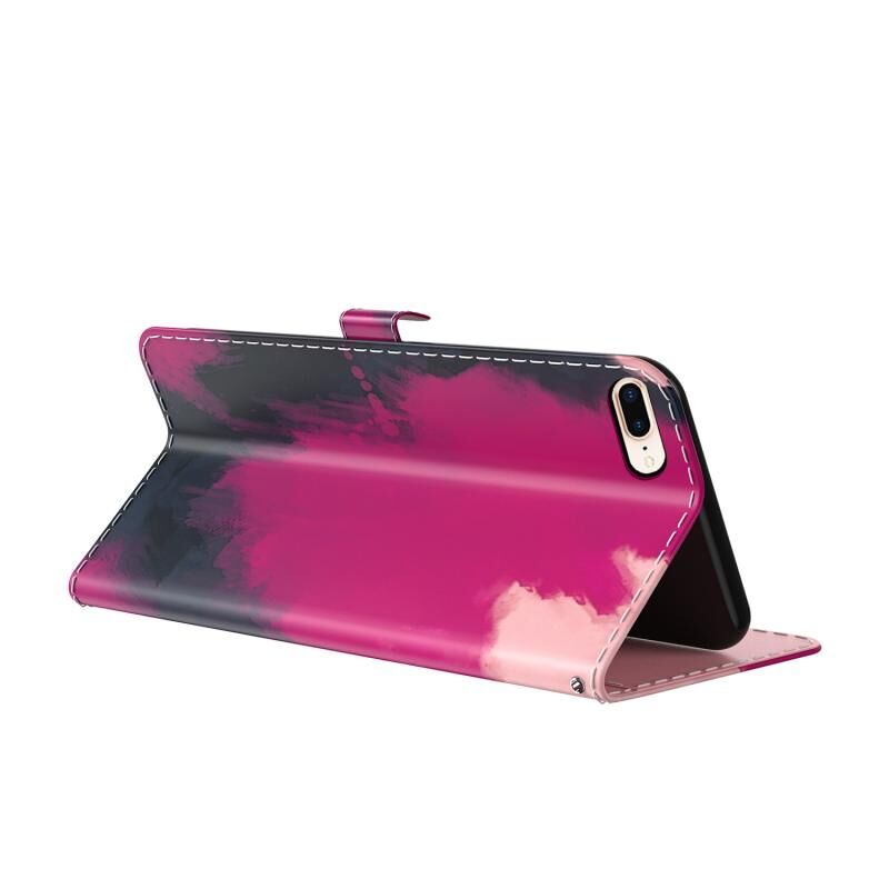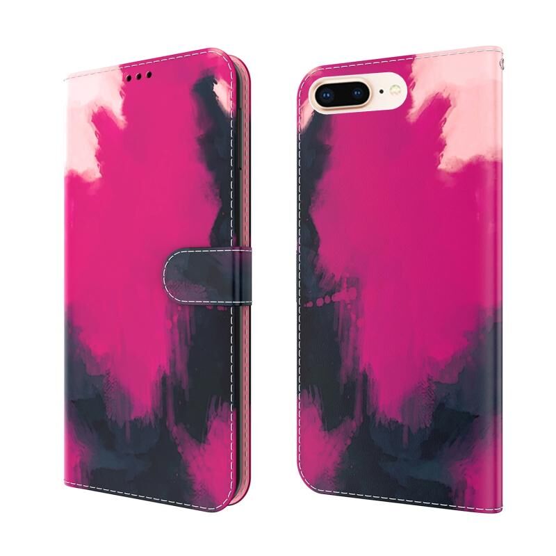 Θήκη Δερμάτινη με σχέδιο ακουαρέλας, οριζόντιο άνοιγμα, με θήκη και υποδοχή για κάρτες & πορτοφόλι για iPhone 8 Plus & 7 Plus (Χρώμα Μούρο)