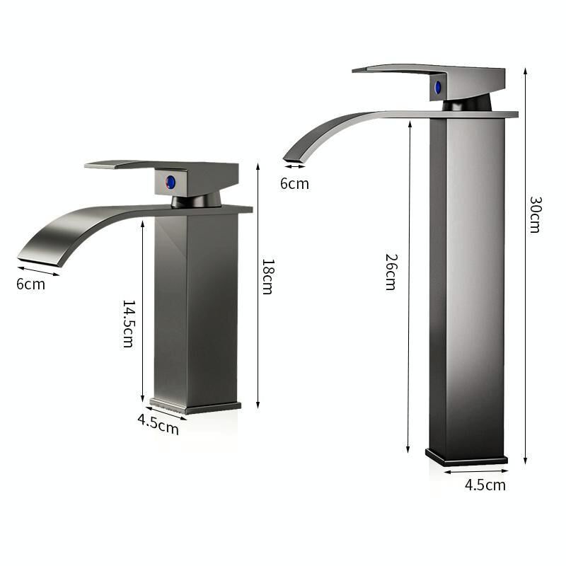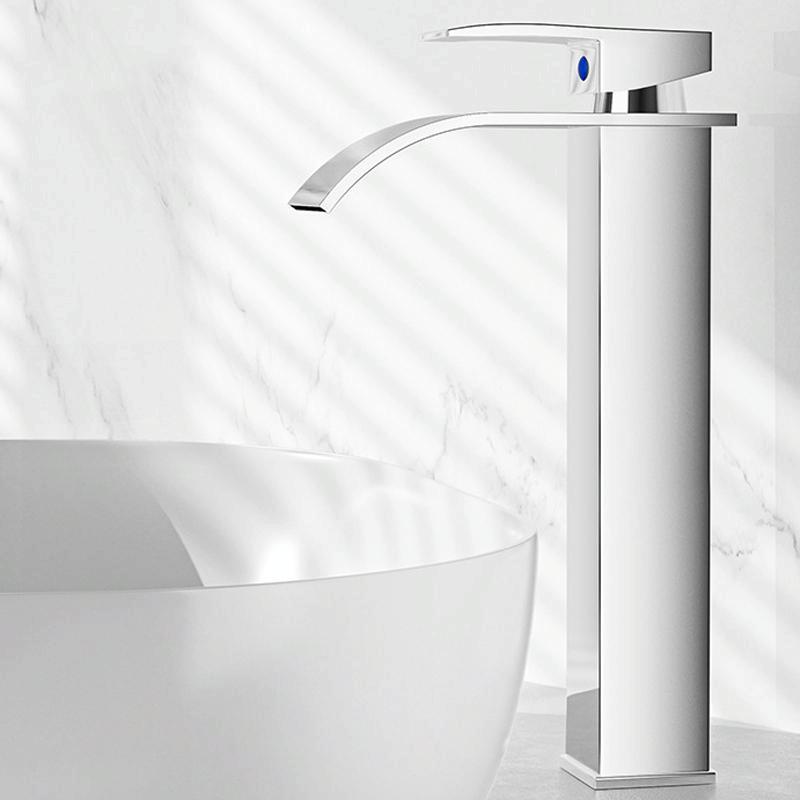 Waterfall Wash Basin Faucet Stainless Steel Hot/Cold Water Mixer Tap for Sink Basin, Spec: High Silver Plating