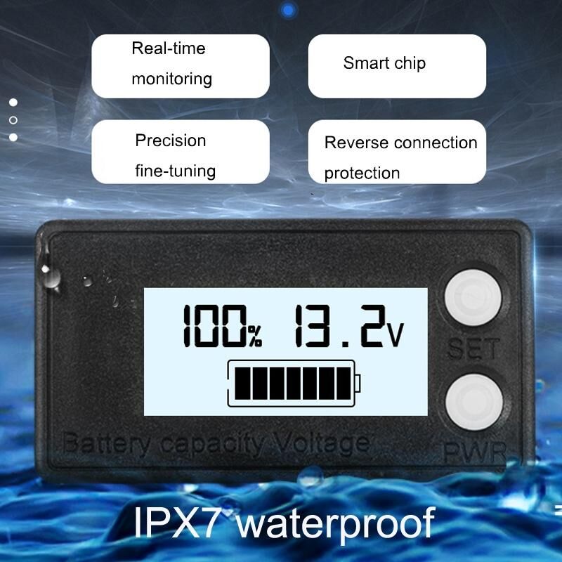 Αδιάβροχο LCD Διπλό-καλώδιο Μπαταρίας Μολύβδου-Οξέος Λιθίου Ψηφιακός Μετρητής Τάσης 8-72V (Λευκό)