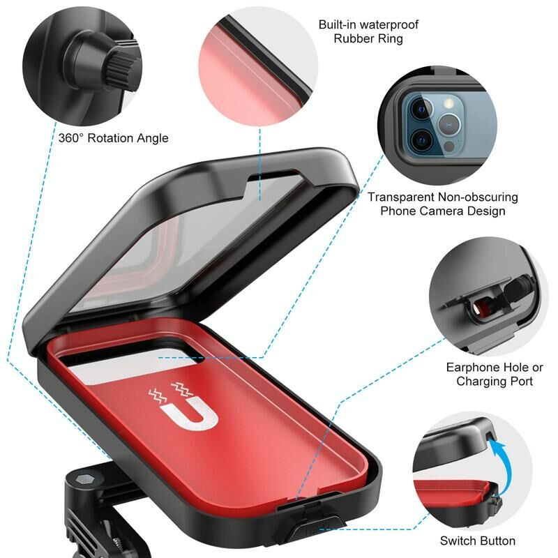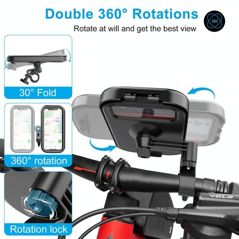4. Η βάση υιοθετεί σχεδιασμό διπλής στεγανοποίησης, αδιάβροχο και ανθεκτικό στη σκόνη, το οποίο μπορεί να προστατεύσει το κινητό σας τηλέφωνο και να σας επιτρέψει να οδηγείτε ανεμπόδιστα