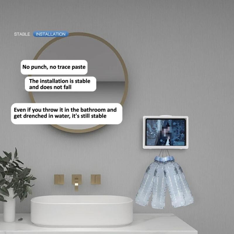 Waterproof Shower Tablet Holder Case Bathroom Kitchen Wall Mount Storage Box For IPad(White)