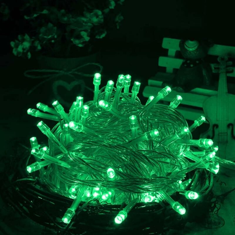 Αδιάβροχο Φωτάκι Σχοινί, Μήκος: 10μ, 100 LED με Ελεγκτή, Εφέ Αναβοσβήνει / Σβήνει / Κυνηγιού, AC 220V, EU Plug (Πράσινο Φως)