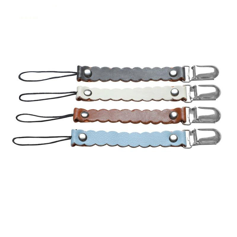 2.Material:Metal clip pacifier for baby+Leather beads pacifier chain for teether strap