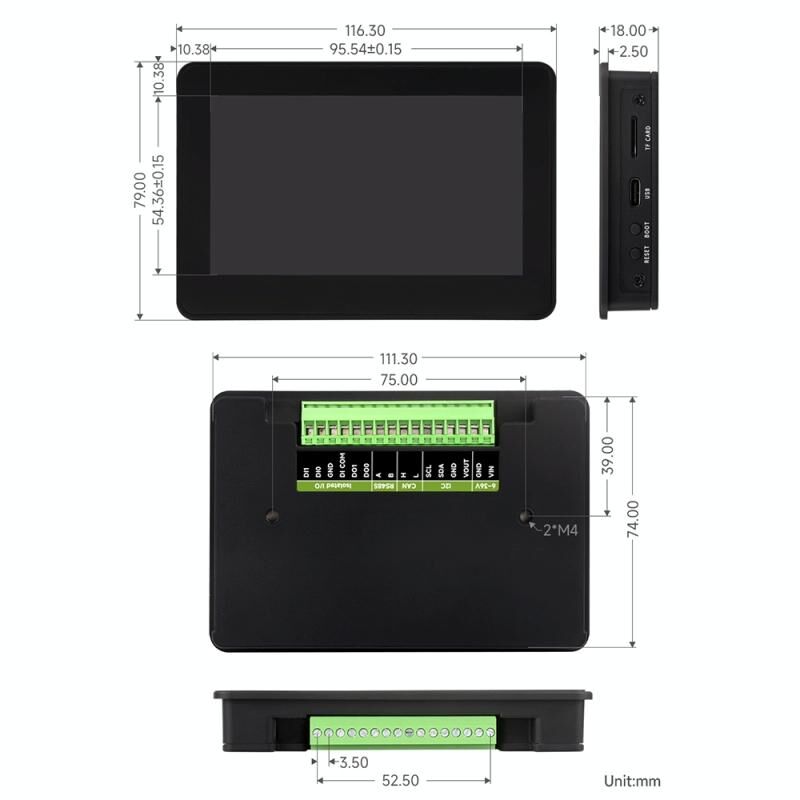 4. Ενσωματωμένη χωρητική οθόνη αφής LCD 4.3 ιντσών, ανάλυση 800×480, 65K χρώματα