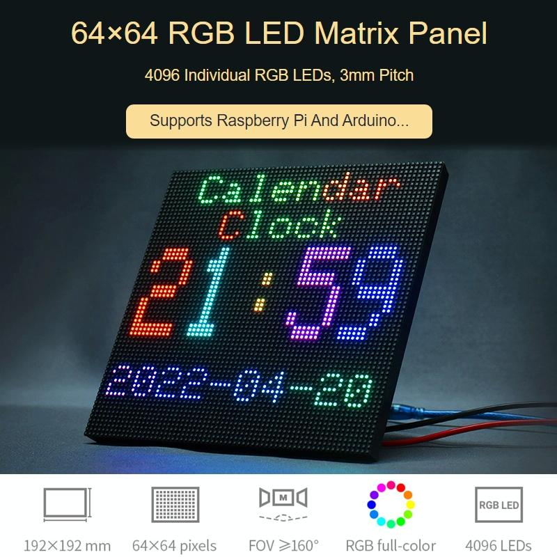 Waveshare RGB LED Matrix Panel 3mm, 64x64 Pixels, Ρυθμιζόμενη Φωτεινότητα (WAVESHARE)