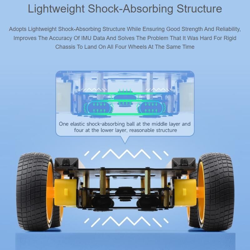 13. Adopt a lightweight shock-absorbing structure, while ensuring good strength and reliability, improve the accuracy of IMU data, and solve the problem that the four wheels of a rigid chassis are difficult to land at the same time