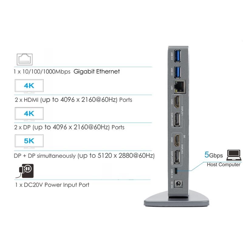2. Έξοδος βίντεο: Διπλή θύρα DP για μονή οθόνη 5K 60Hz ή μονή θύρα DP + μονή θύρα HD για διπλή οθόνη 4K60Hz