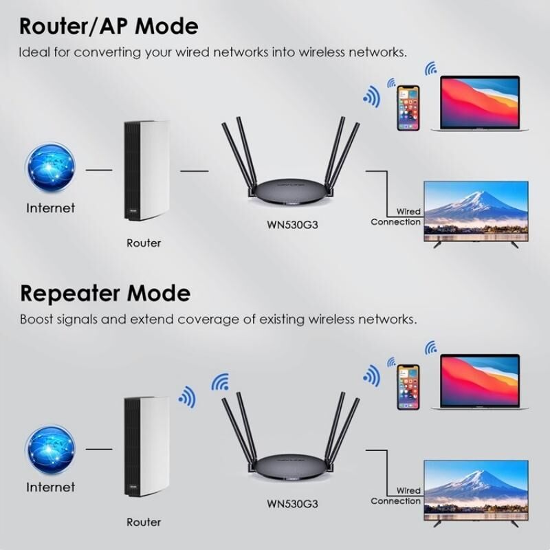 3.Υποστηρίζει PPPoE, Dynamic IP, Static IP και WISP πρόσβαση στο Internet