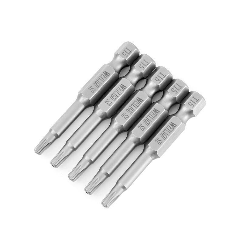 WEILIGU 5 τεμ. 75mm T15 Μαγνητικό S2 Πνευματικό Bit Ηλεκτρικού Δραπάνου Κεφαλή Δαμασκηνιάς Με Κεντρική Οπή (WEILIGU)