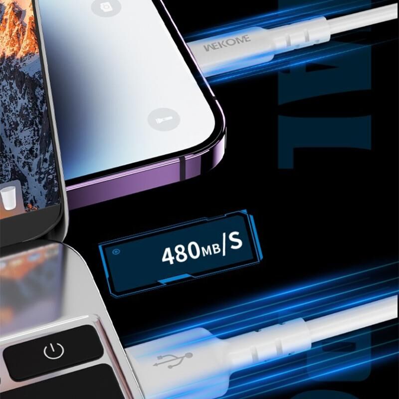 Καλώδιο Δεδομένων WEKOME WDC-01 Σειρά Υδροηλεκτρικής Ενέργειας 2.4A USB σε 8 ακίδες PVC, Μήκος: 1m (Μαύρο) (WK)