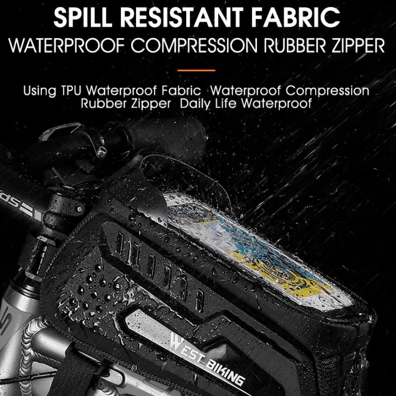 WEST BIKING Bicycle Front Bag TPU Hard Shell Riding Front Beam Bag(Orange) (WEST BIKING)