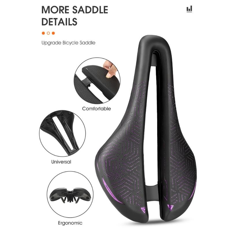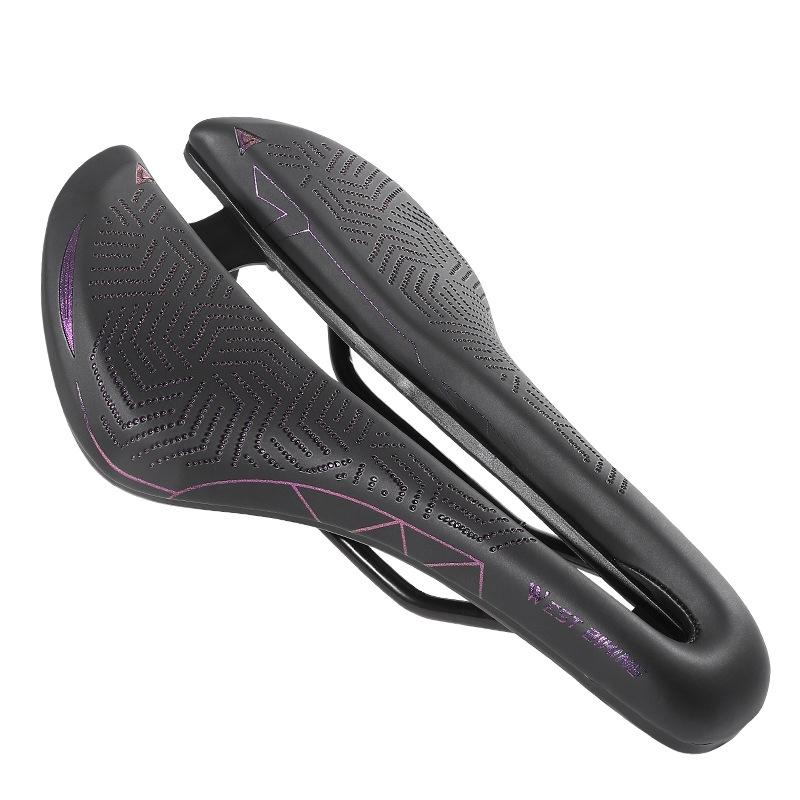 WEST BIKING Hollow Breathable Comfort Bicycle Saddle(Black Purple) (WEST BIKING)